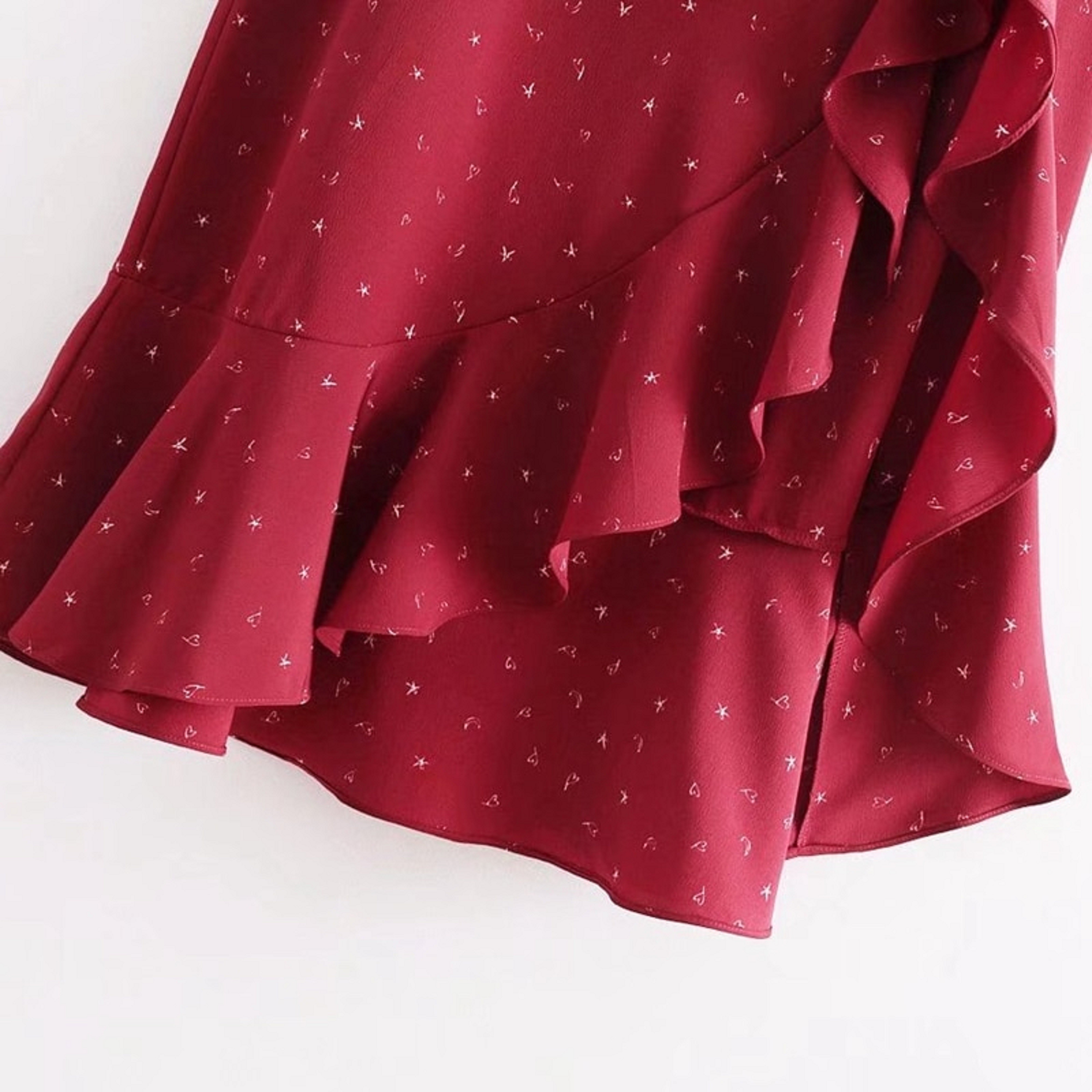 Saia feminina de cintura alta com volantes