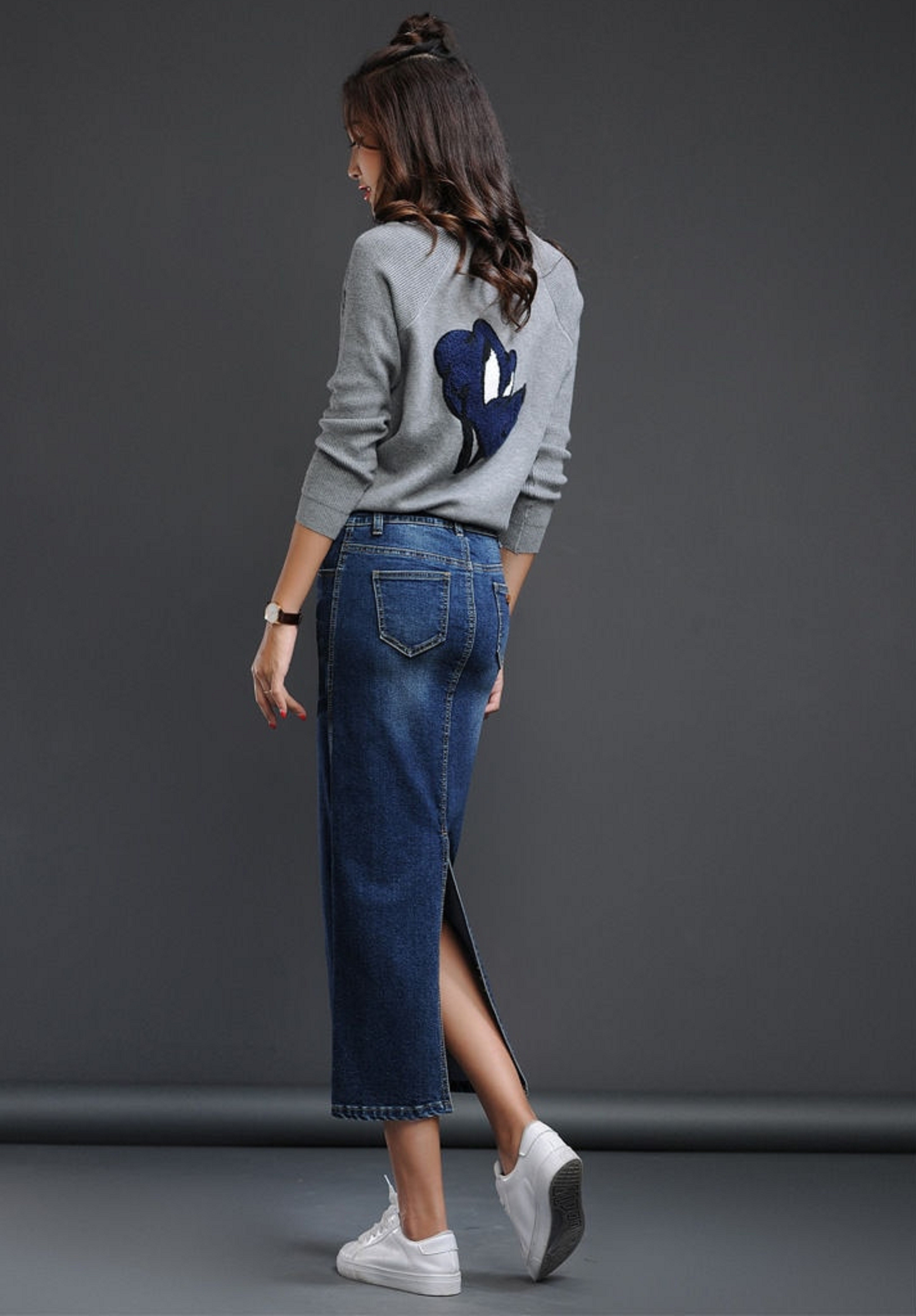 Saia longa de ganga feminina com fenda