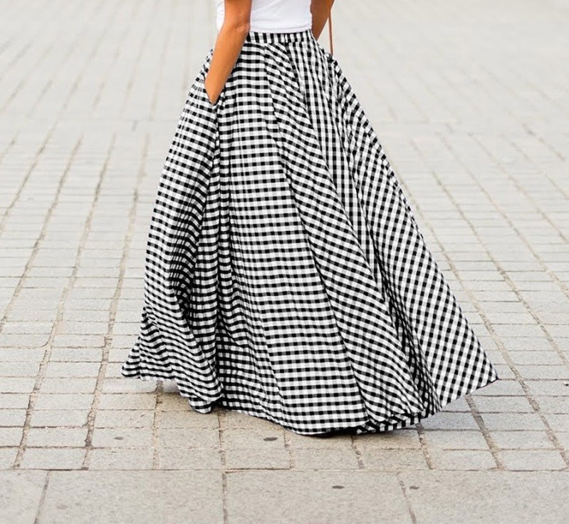 Saia longa feminina com padrão xadrez