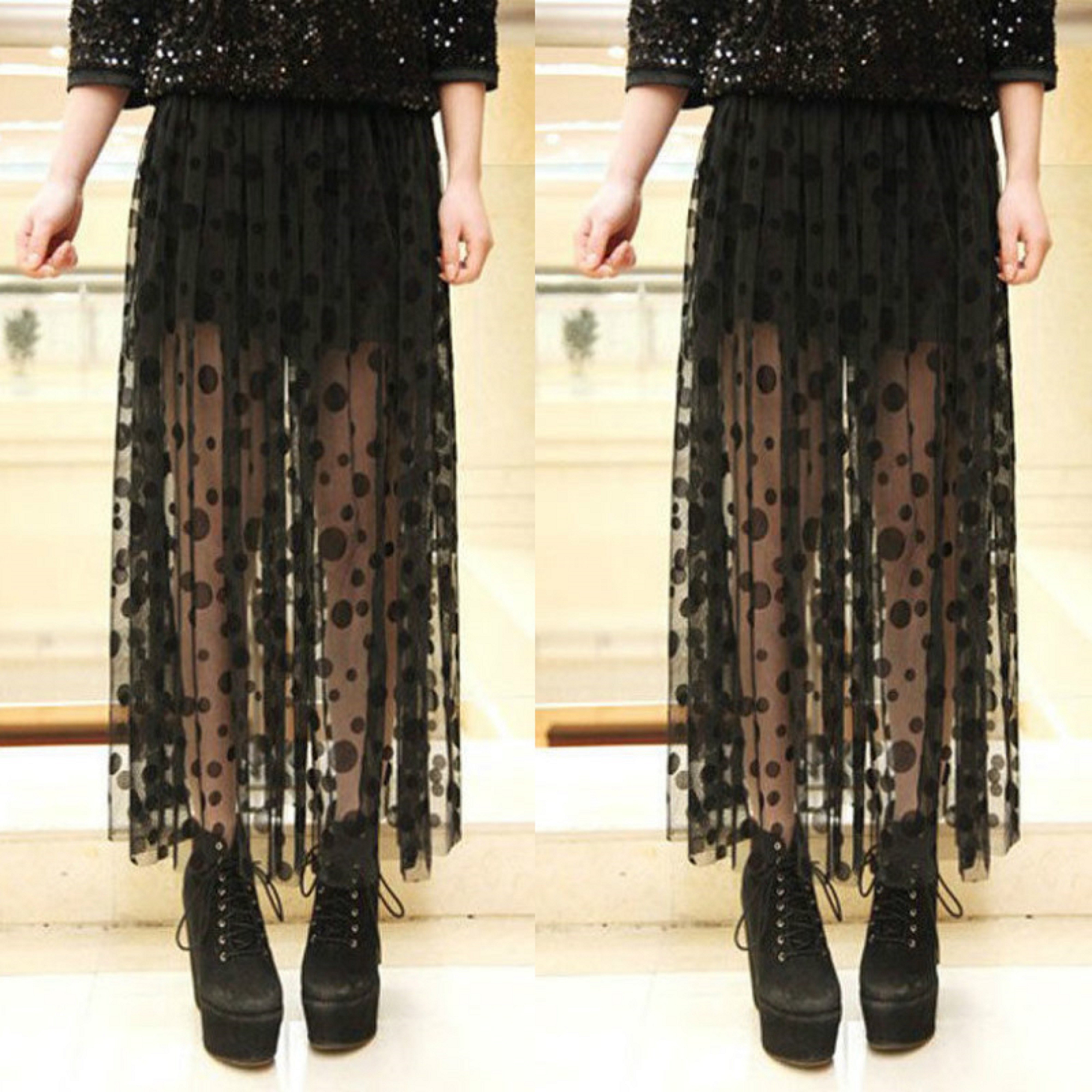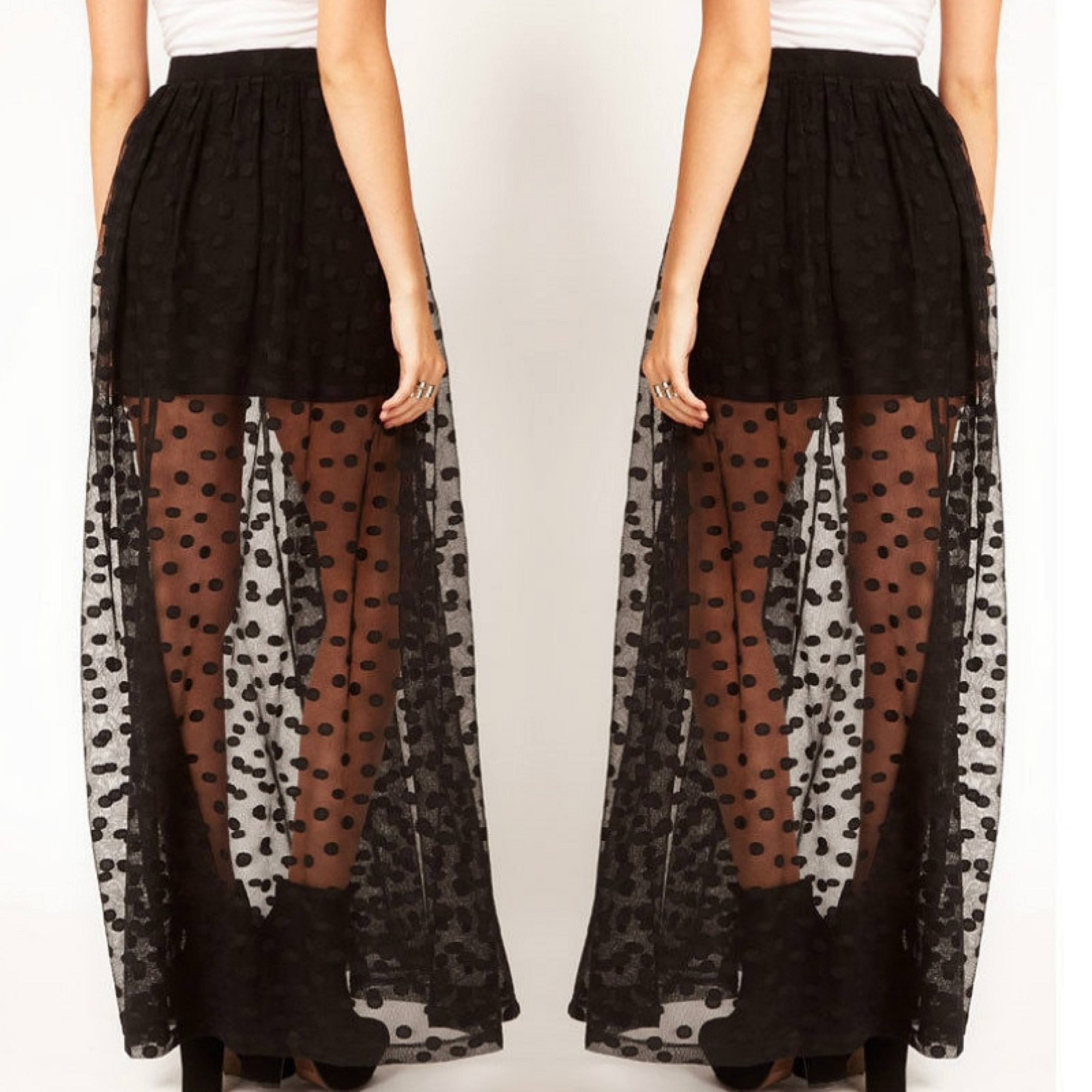 Saia maxi transparente para senhora com bolinhas