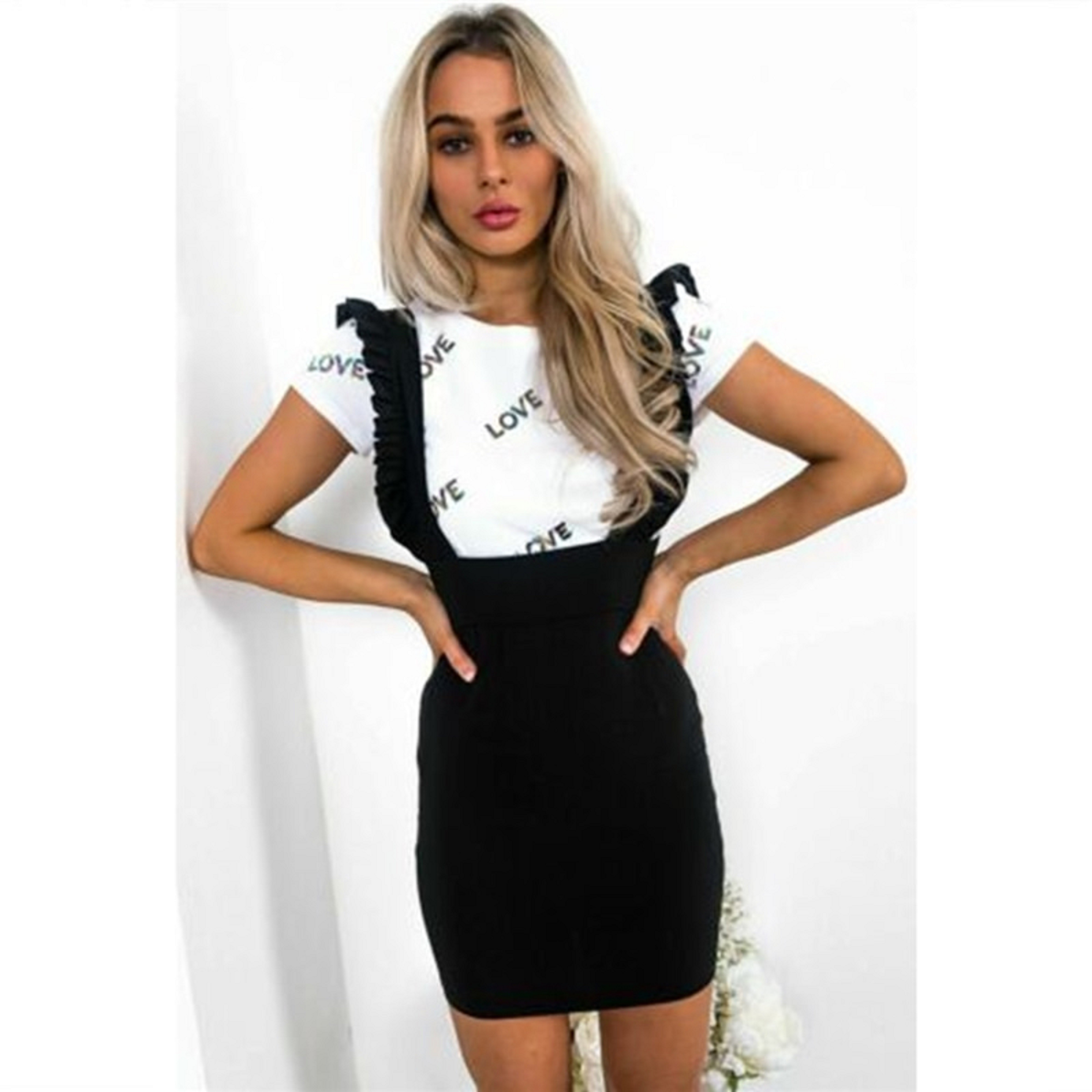 Saia mini feminina com alças de babado
