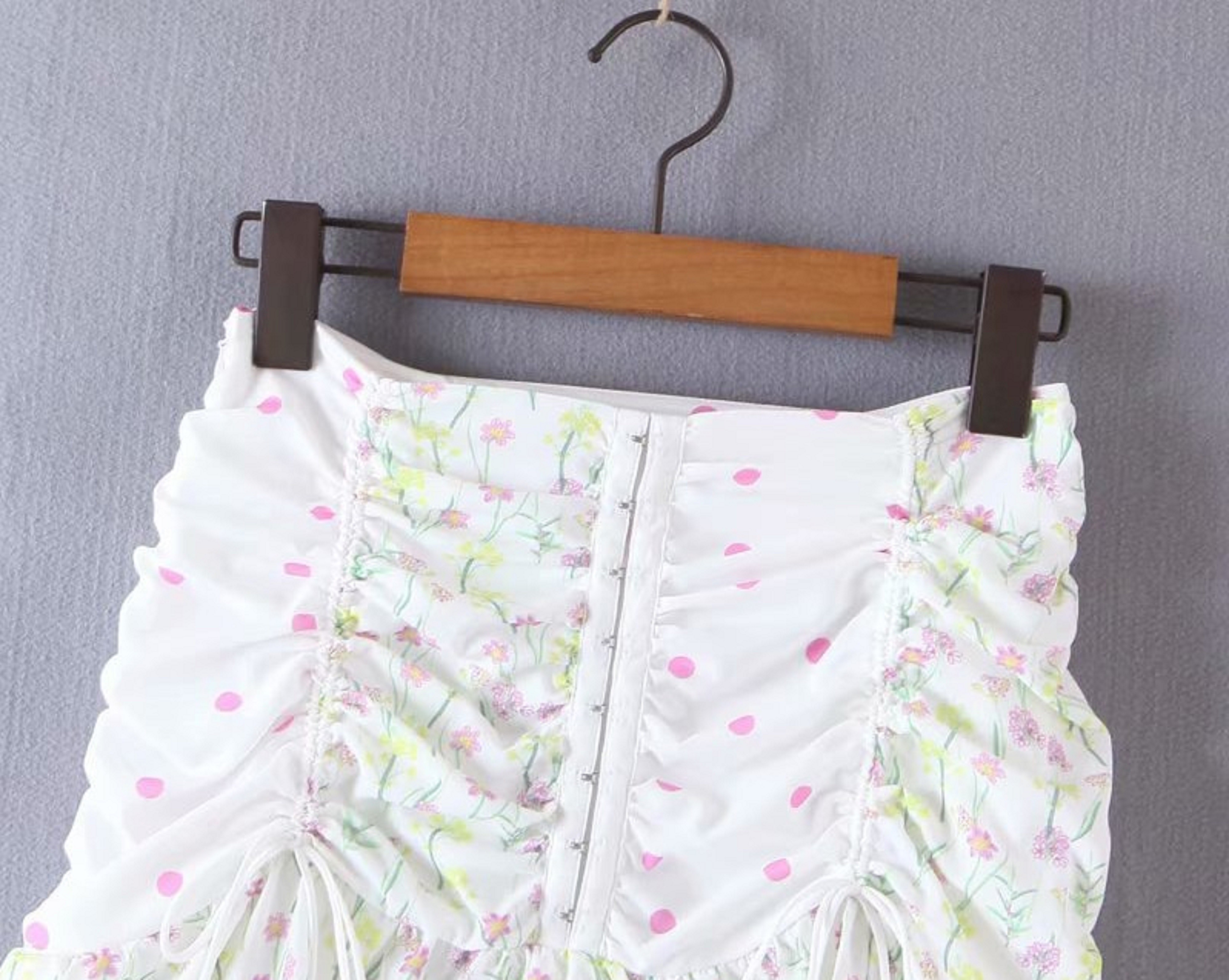 Saia mini feminina com flores e bolinhas