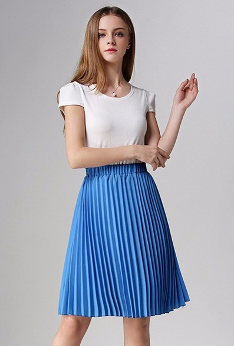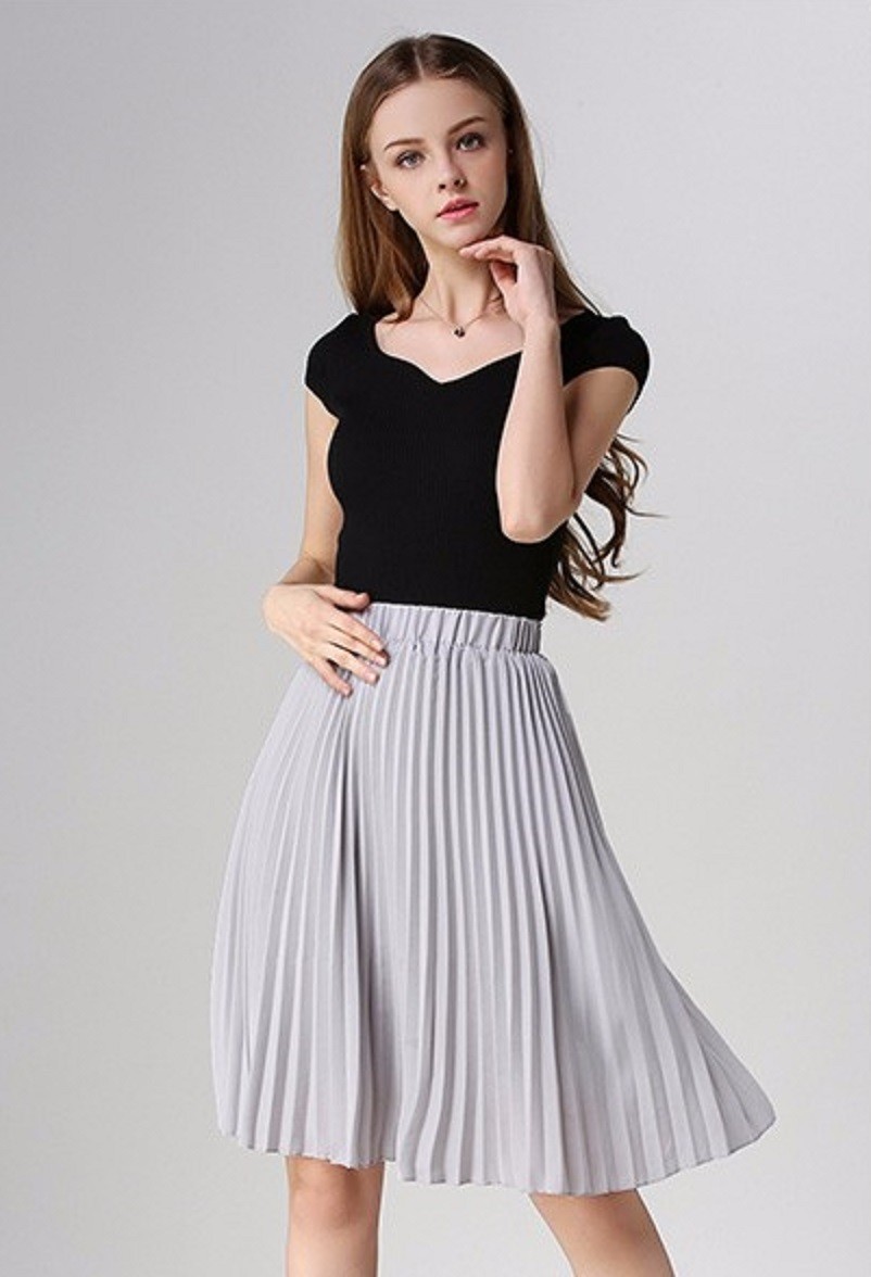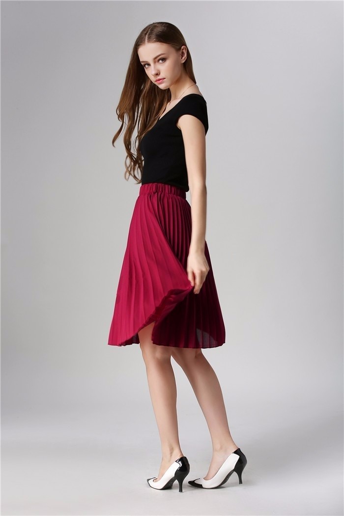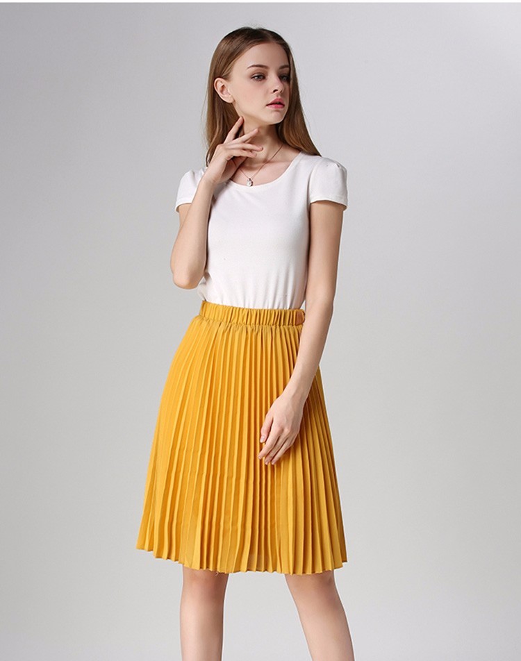 Saia de moda feminina fabricada em chiffon no estilo plissado.