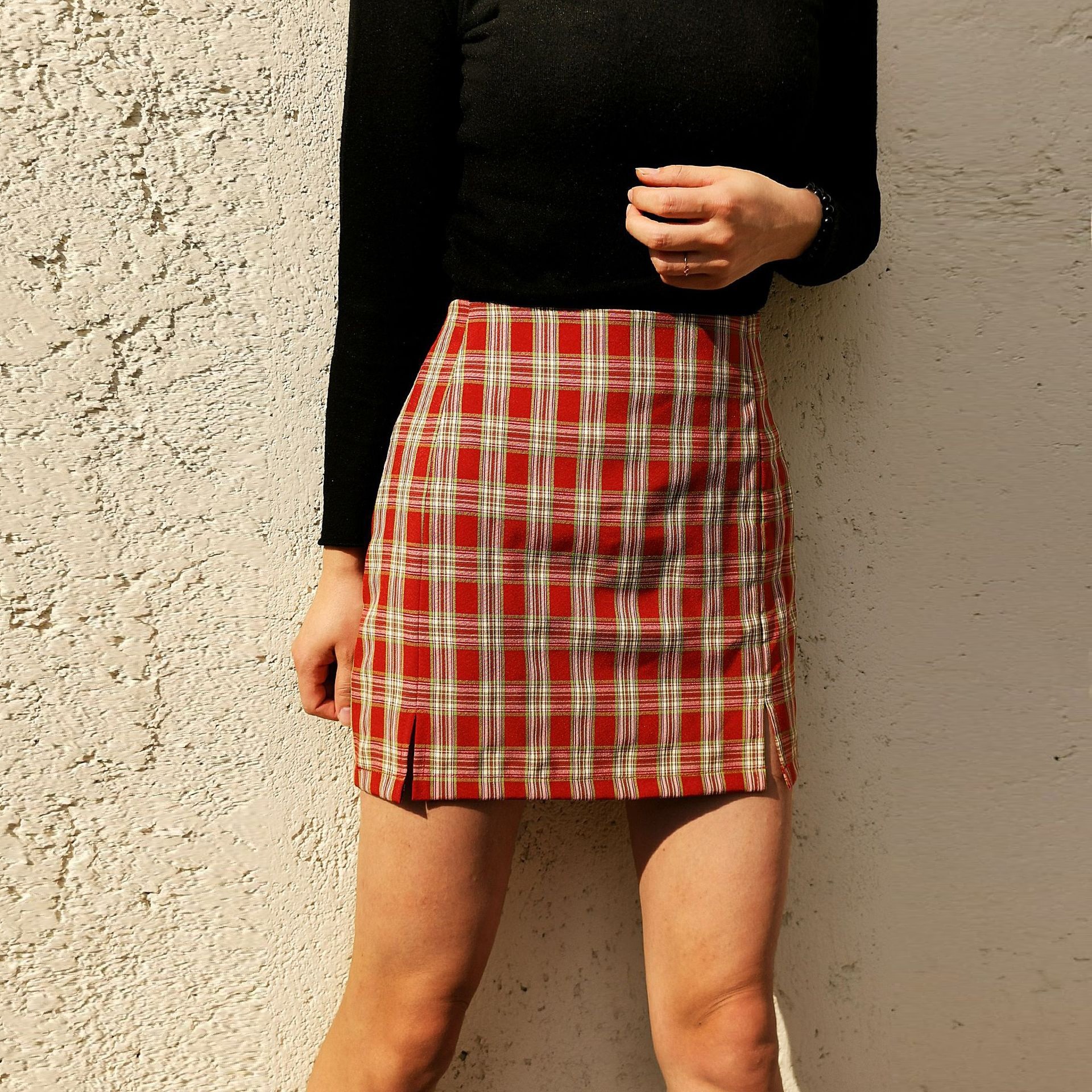 Salsa mini saia xadrez com fendas