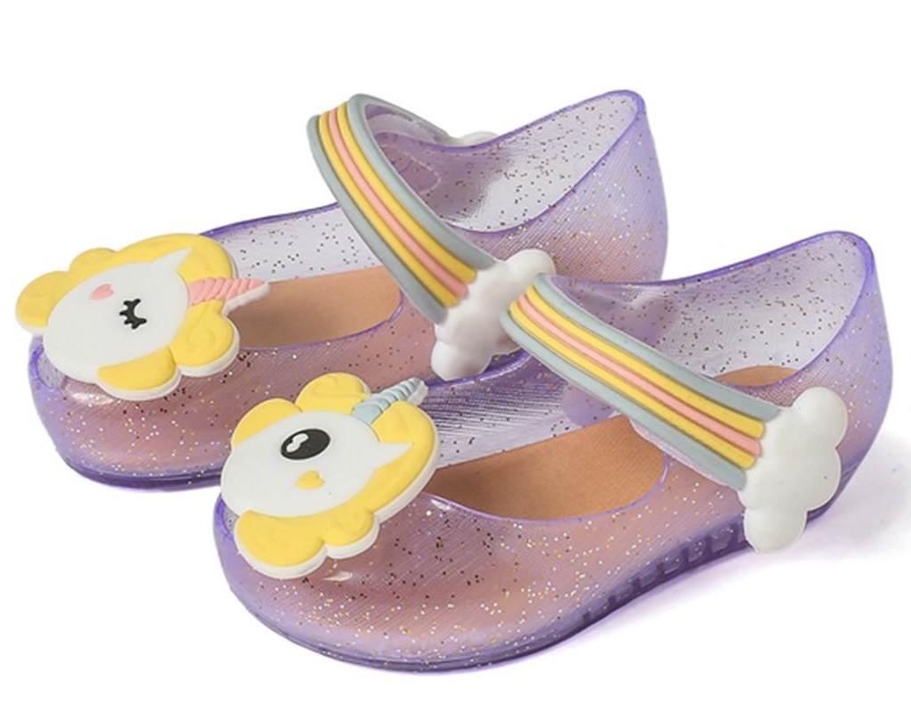 Estas sandálias de borracha com um unicórnio serão muito apreciadas pelas suas filhas.