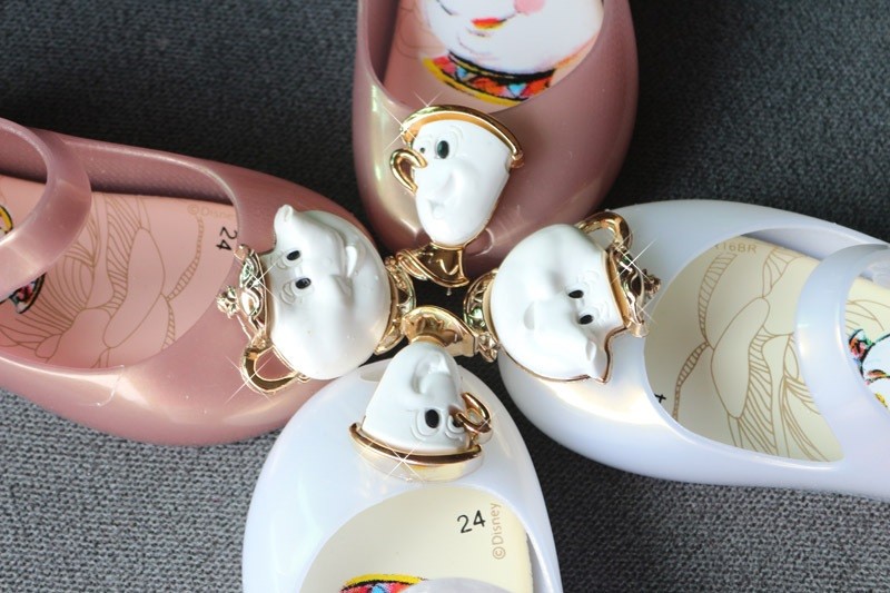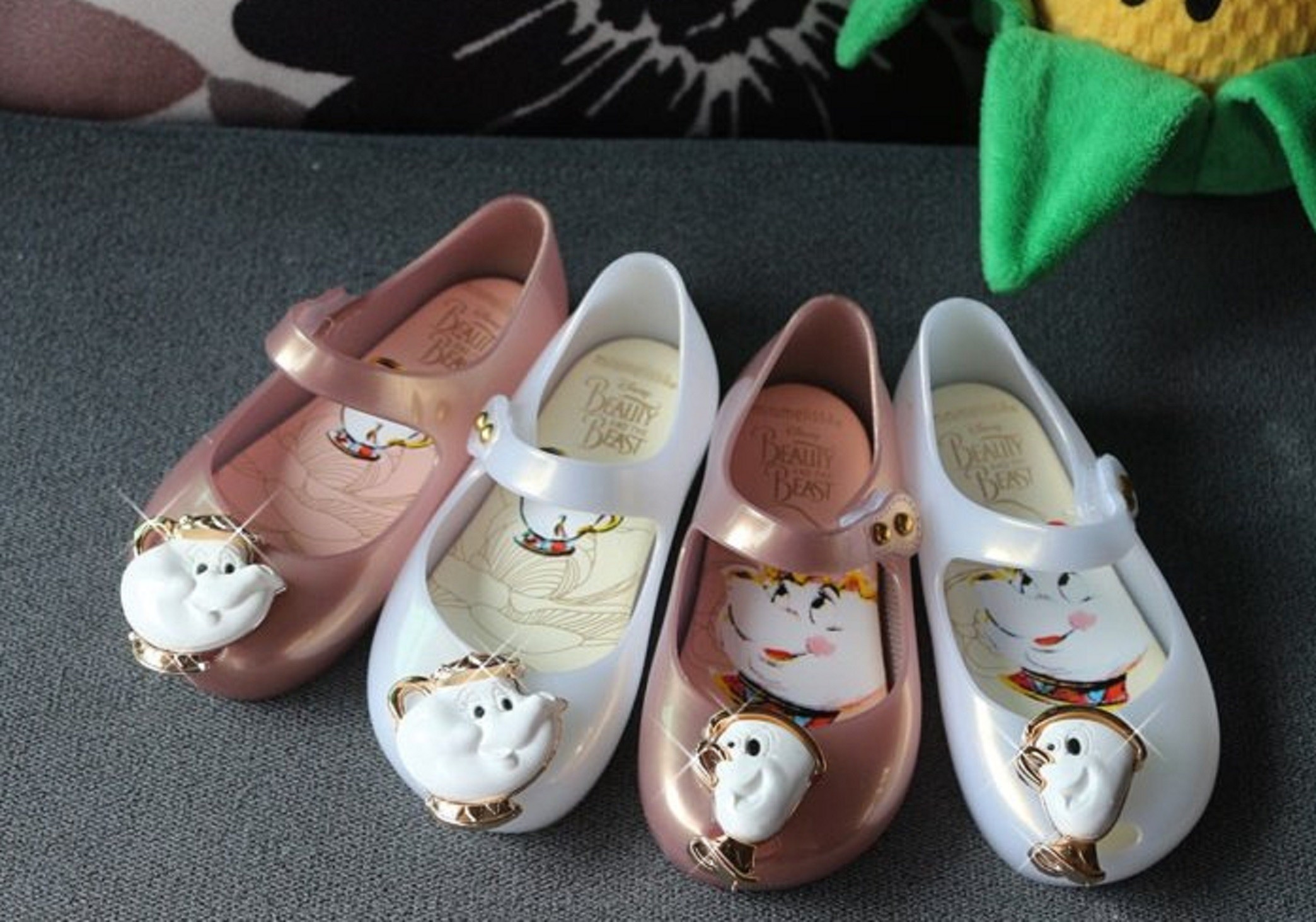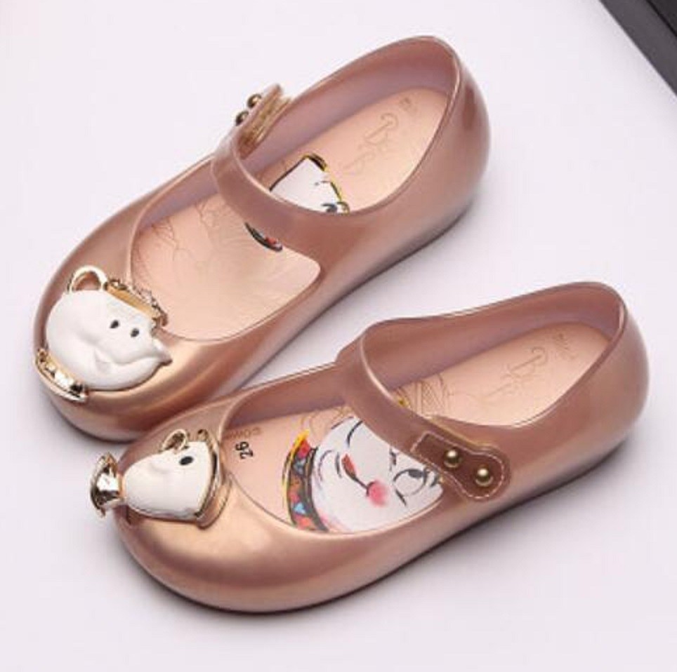Estas sandálias de borracha com um jarro e uma chávena de conto de fadas vão ser adoradas por todas as pequenas senhoras.