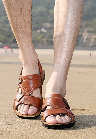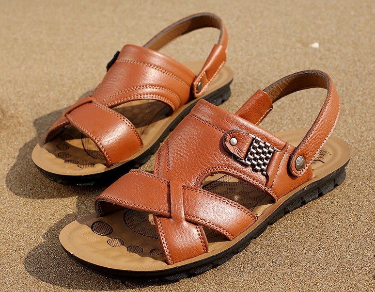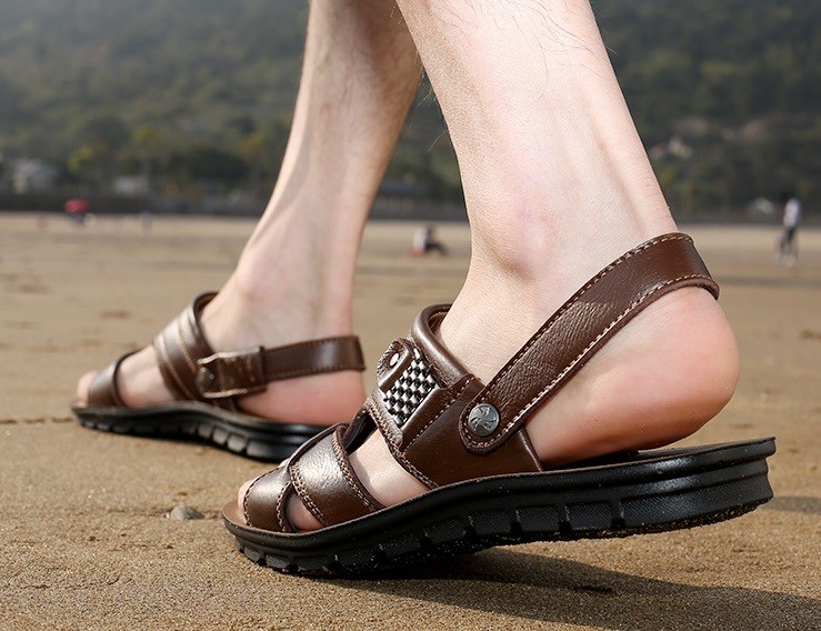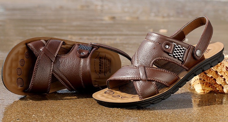 Sandálias de couro para homem com tira são macias, resistentes à flexão e muito elegantes.