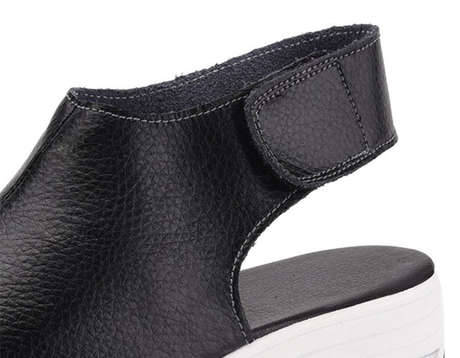 As sandálias fecham-se com velcro, por isso não terá qualquer dificuldade em calçá-las.