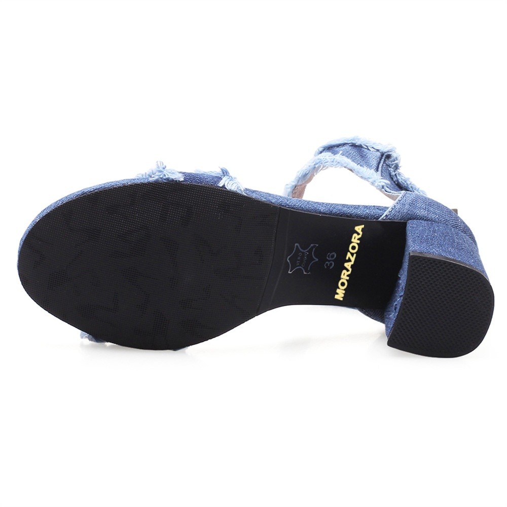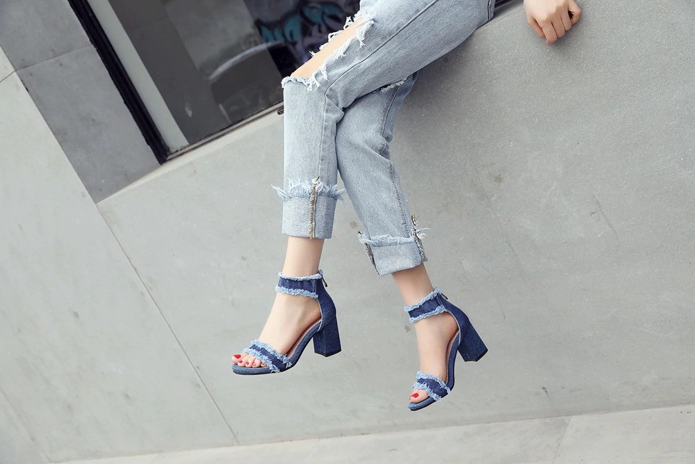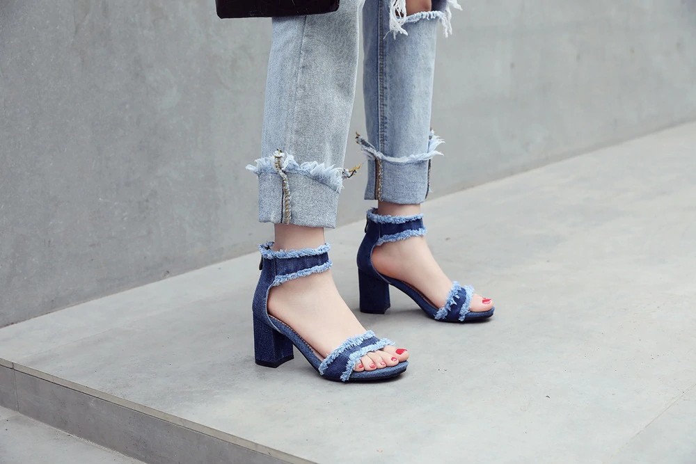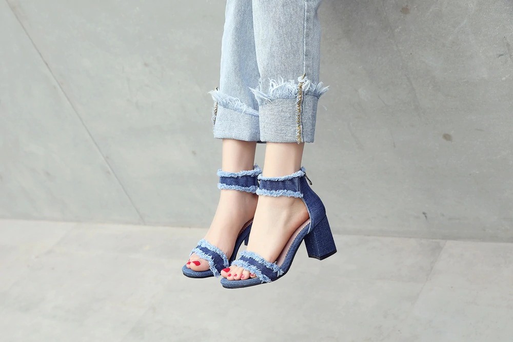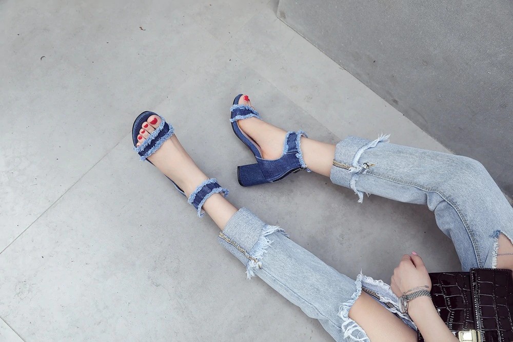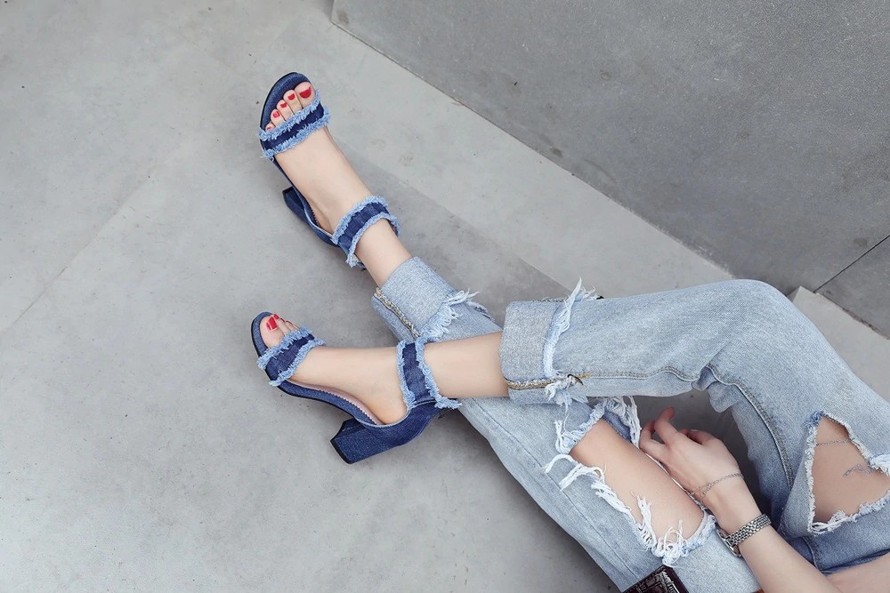 Obujte-se com estas sandálias de denim de qualidade e seja deslumbrante!