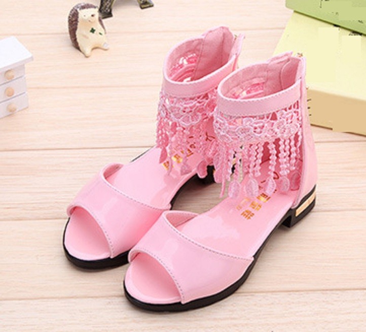 Sandálias com franjas que as jovens senhoras podem usar no clima quente de verão como um acessório de moda para vestidos.