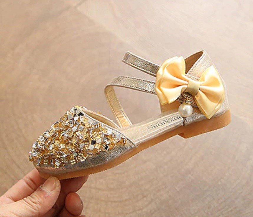 Nas sandálias, as suas meninas vão sentir-se como princesas. As sandálias fecham-se com velcro e são adornadas com um laço com pérola.