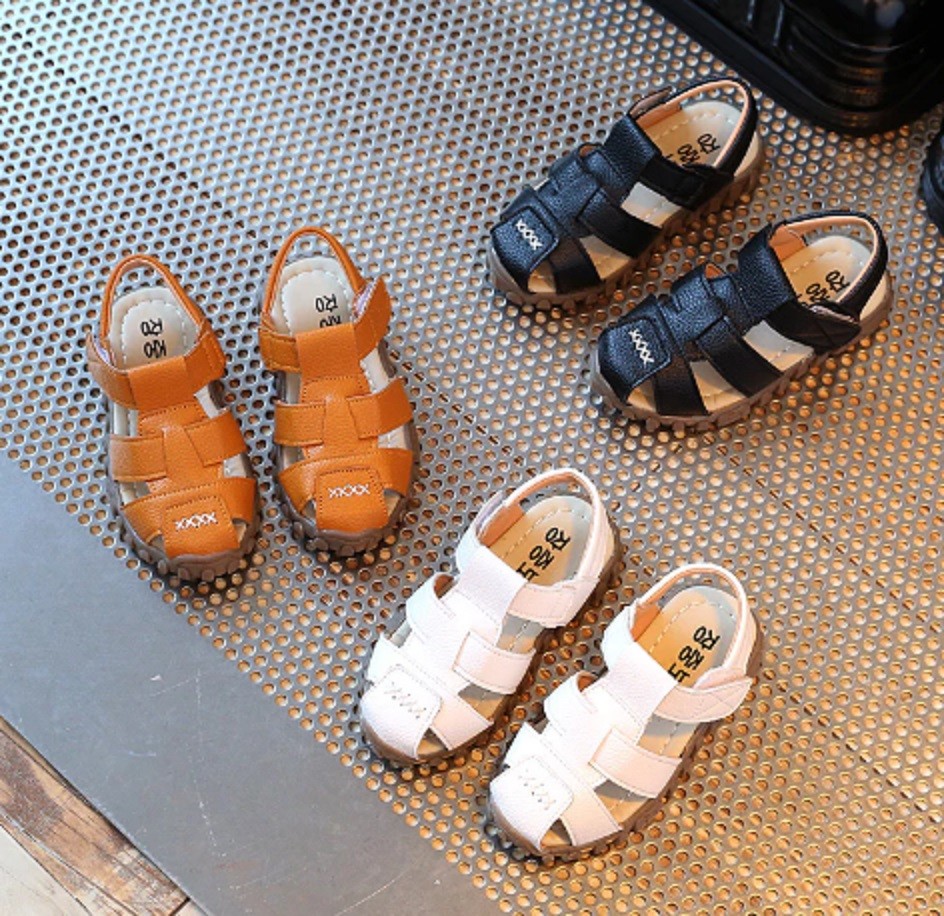 Estas sandálias de tiras são um calçado de verão adequado para meninas e meninos.