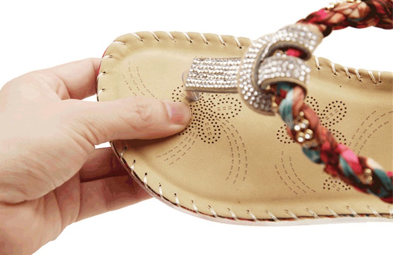 Estas sandálias vão tornar-se as suas favoritas nos dias de verão. As sandálias são adornadas com pedras.