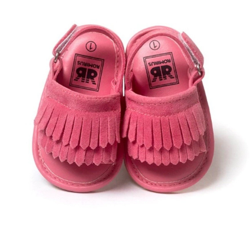 Bonitas sandálias modernas são a escolha ideal para bebés em carrinhos.