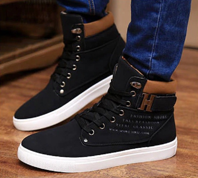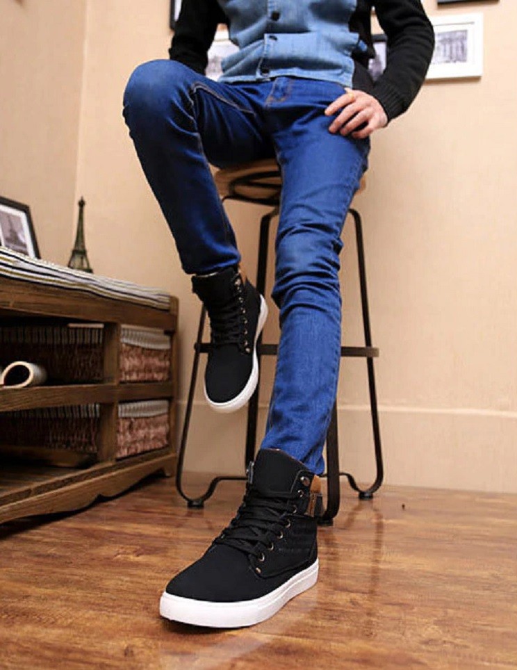 Estas modernas sapatilhas de cano alto para homem podem ser usadas com qualquer conjunto.