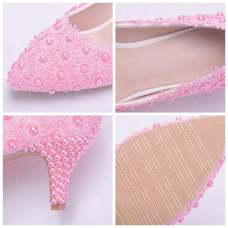 Página inicial Página inicial Calçado Calçado de mulher Sapatos de salto de mulher Sapatilhas de casamento femininas com flores e pérolas J1172