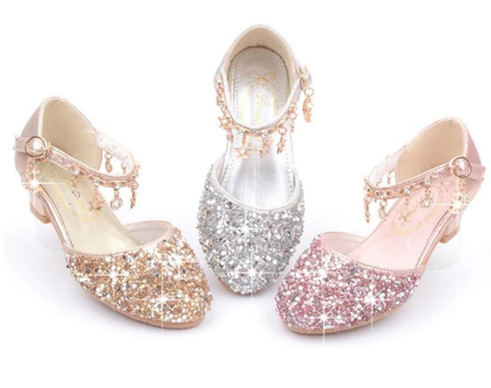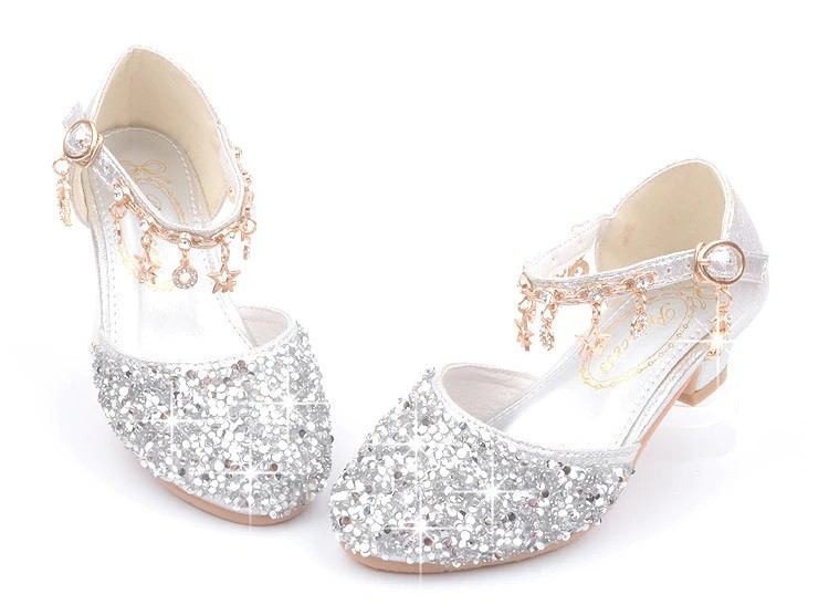As sapatilhas têm uma tira em volta do tornozelo, que é decorada com vários pendentes.