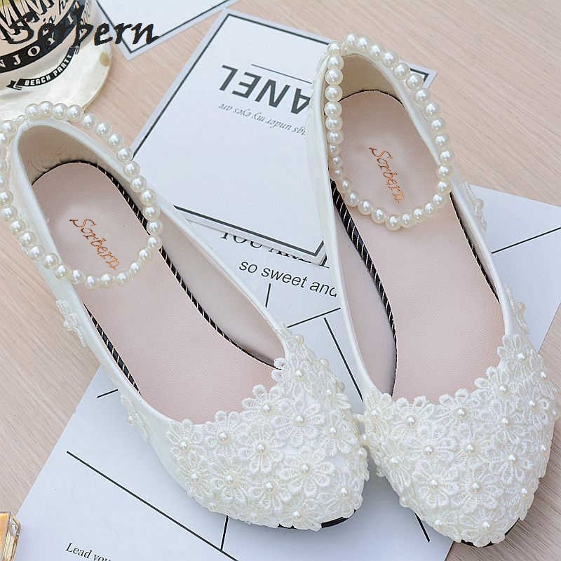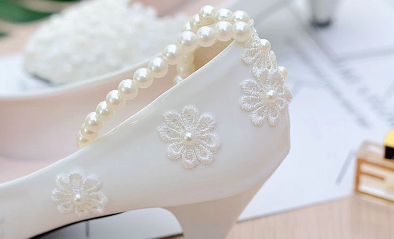 Estas elegantes sapatilhas são ideais para o dia do casamento. As sapatilhas estão decoradas com flores e pérolas.