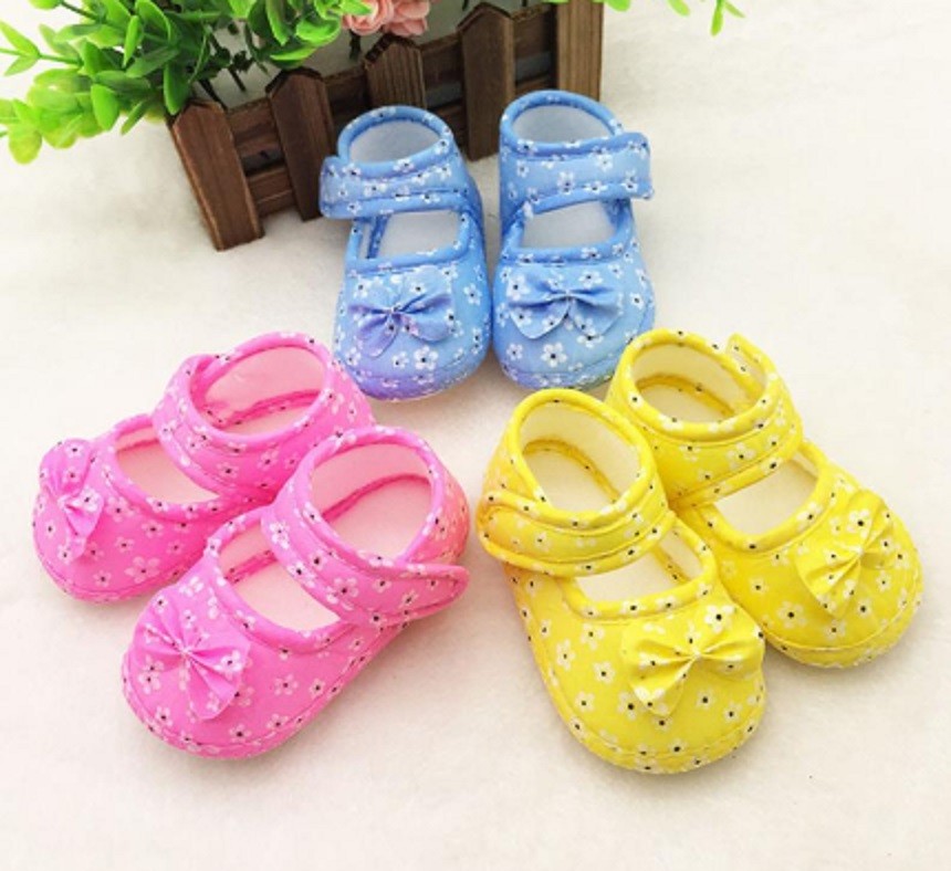 Sapatinhos de algodão para menina com flores são adequados para as mais pequenas fashionistas.