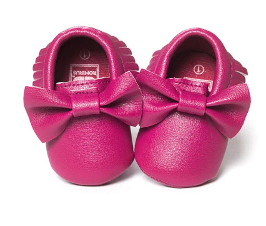 Sapatinhos de menina com laço são destinados aos mais pequenos.
