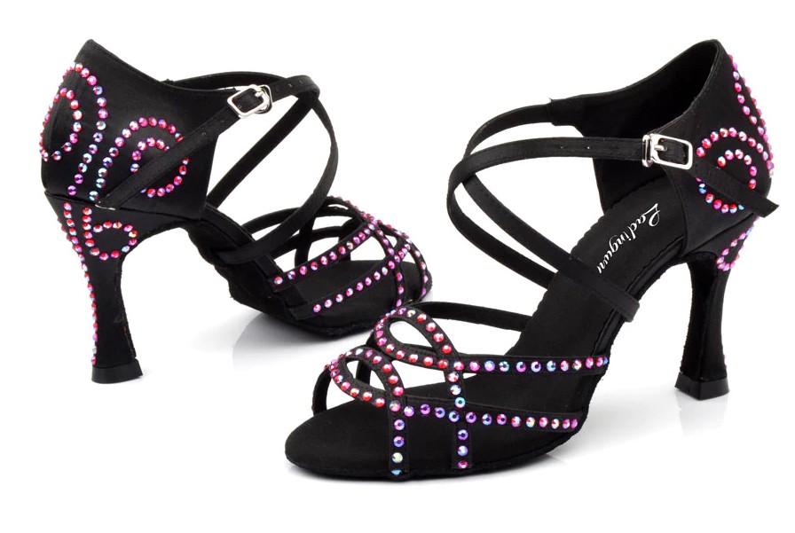Estes magníficos sapatos de dança com brilhantes são muito confortáveis.