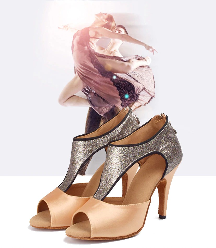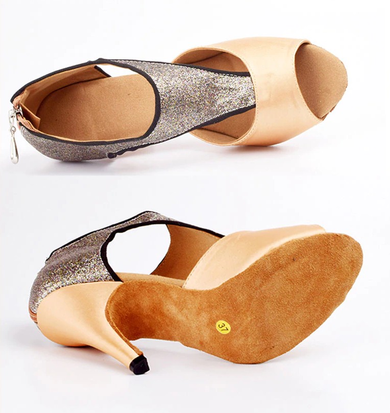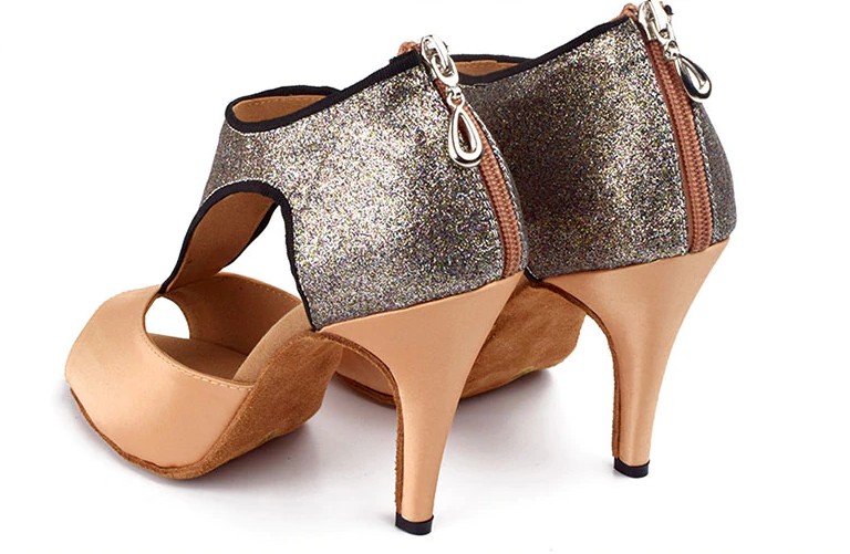 Estes elegantes sapatos de dança com brilhantes são muito confortáveis.