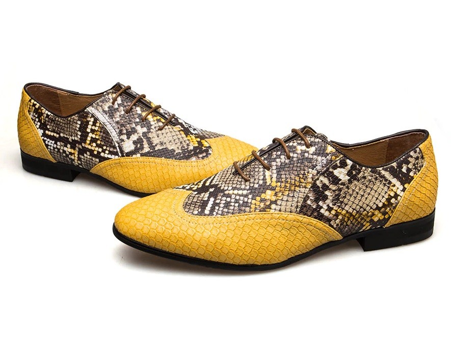 Sapatos de homem amarelos - pele de cobra