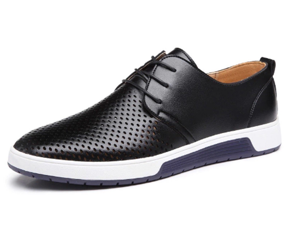 Sapatos de homem com pequenos orifícios são muito arejados, confortáveis e elegantes.