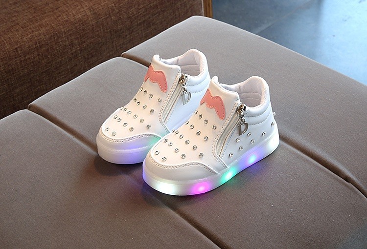 Na sola dos sapatos, há luzes LED que brilham a cada passo.