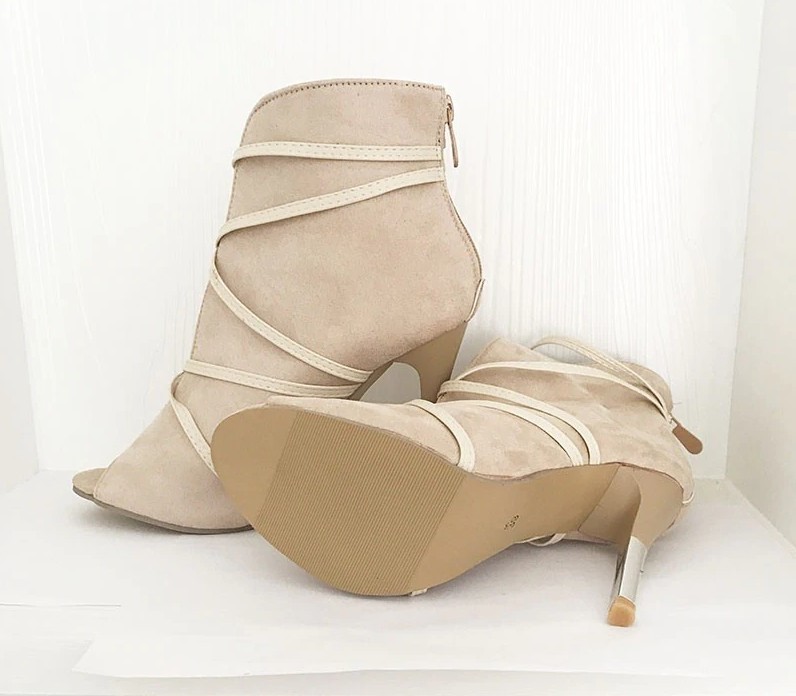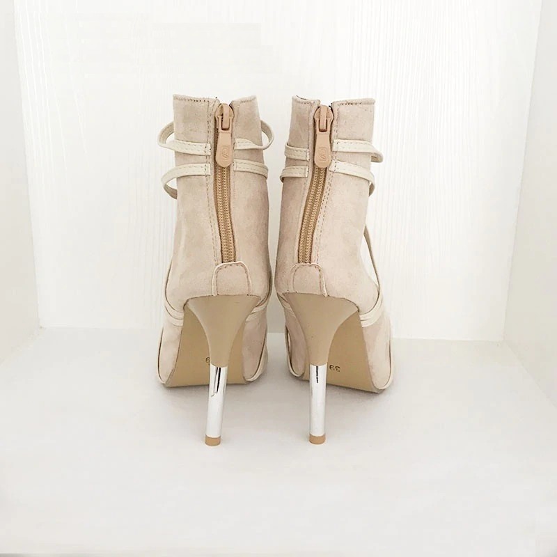 Os sapatos fecham com um zíper, que está localizado na parte de trás.