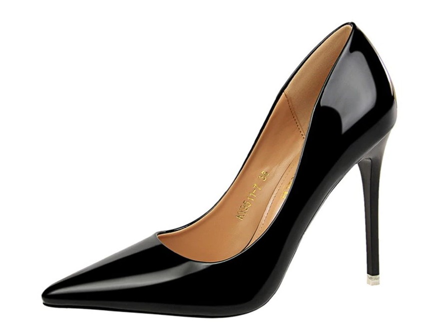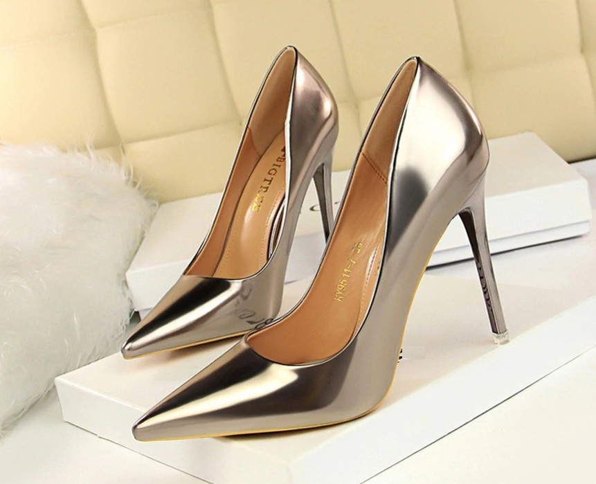 Estes sapatos de salto altos brilhantes vão conquistar o seu coração pela sua elegância.