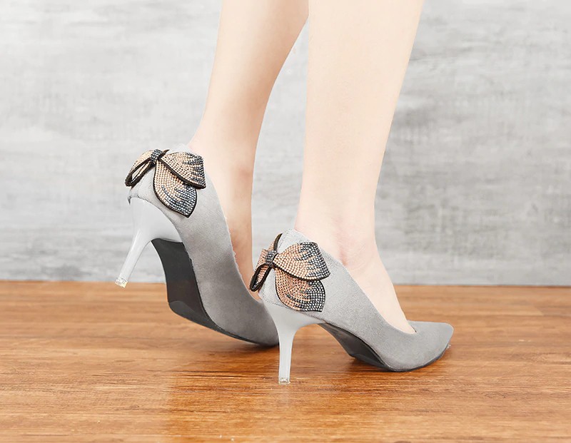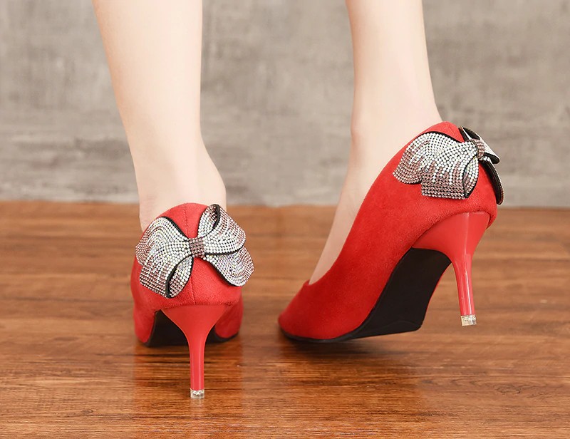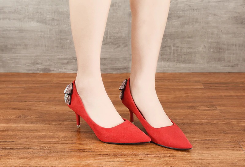 Página inicial Página inicial Calçado Calçado de mulher Sapatos de salto de mulher Sapatos de salto em camurça para senhora com laço J1761