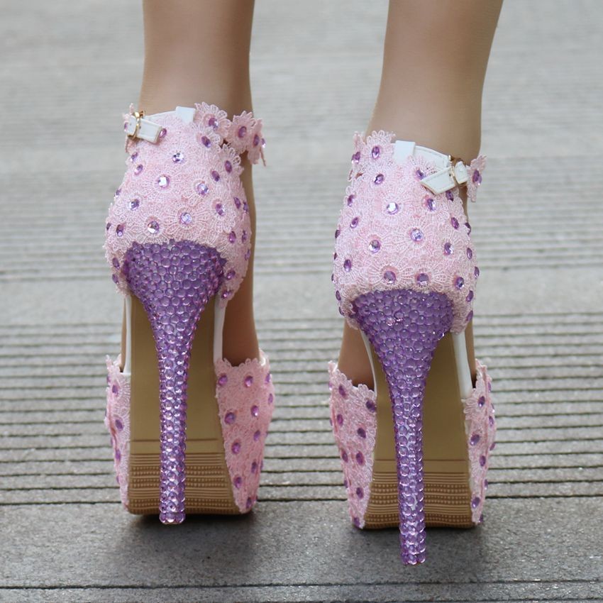 Página inicial Página inicial Calçado Calçado de mulher Sapatos de salto de mulher Sapatos de salto rosa para senhora com brilhantes