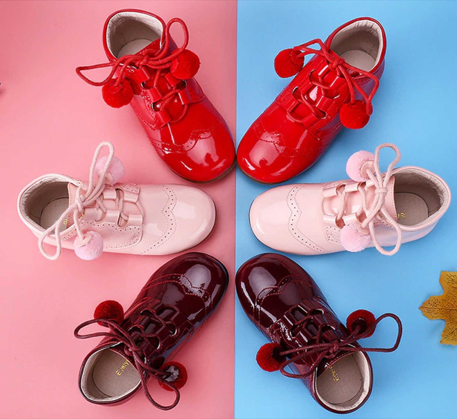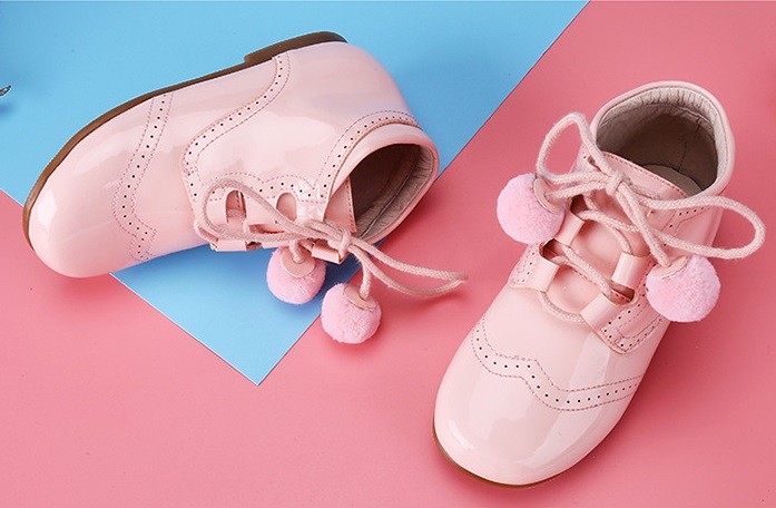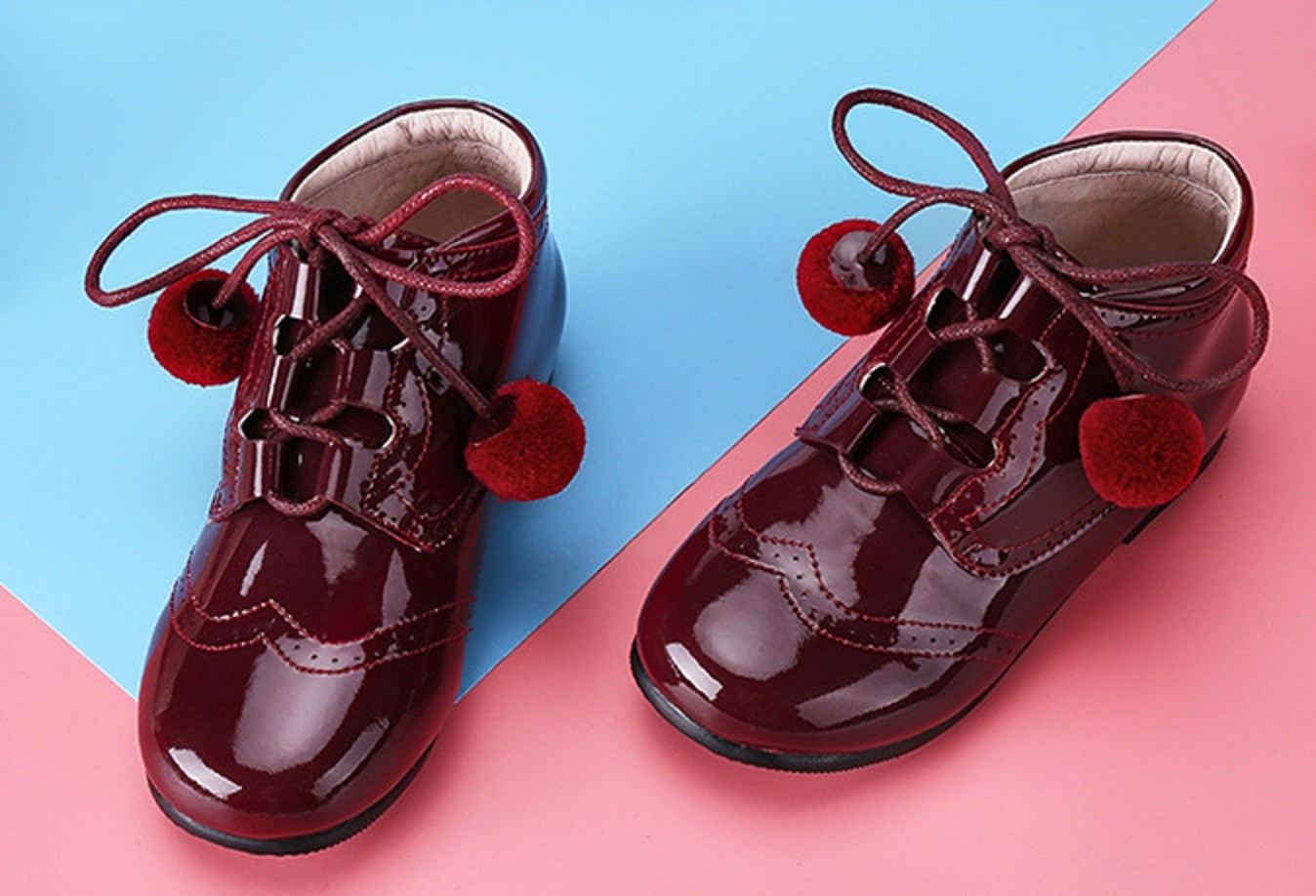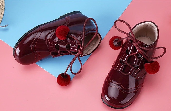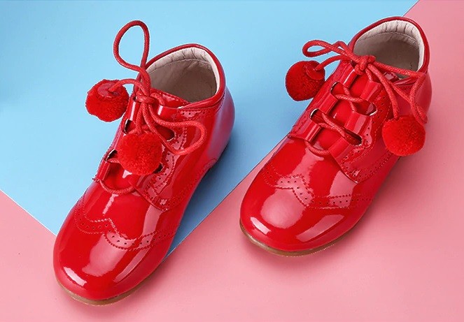 Estes sapatos lacados serão um excelente complemento de moda para o conjunto social de uma menina.