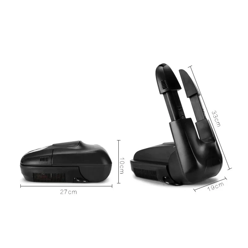 Secador potente de sapatos com desinfeção a ozono que seca eficazmente e remove odores dos calçados. Braços ajustáveis, temporizador e design dobrável para fácil utilização. Descrição completa