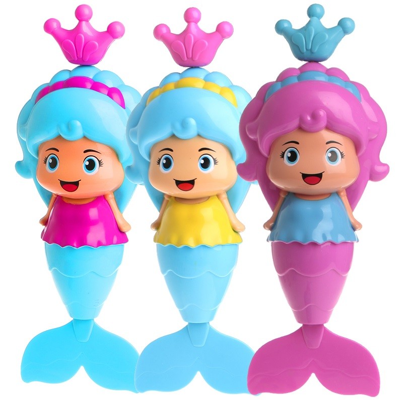 Sereias coloridas, ao puxar a coroa, vão nadar com as crianças.