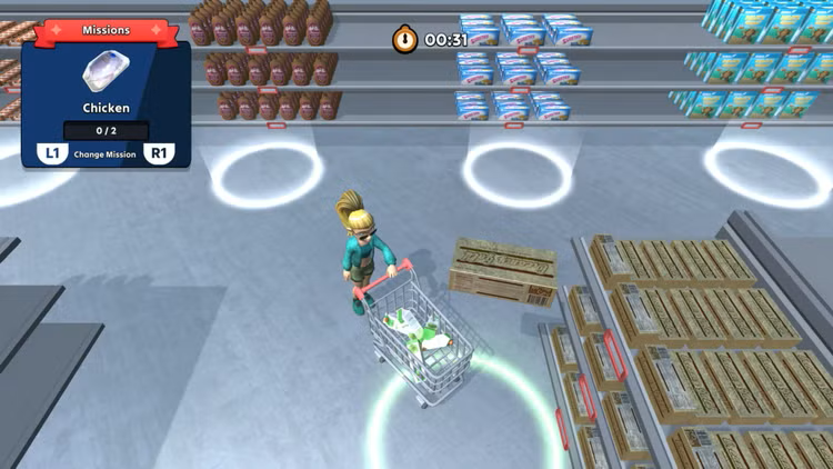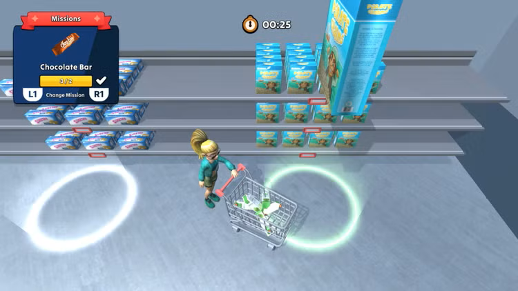 Armados com um carrinho de compras, você navegará por um ambiente movimentado de supermercados, evitando obstáculos e tomando decisões estratégicas sobre como encher o seu carrinho com os produtos desejados antes que o tempo acabe. Cada nível aumenta em complexidade e urgência, testando a sua velocidade, precisão e habilidades de planeamento.