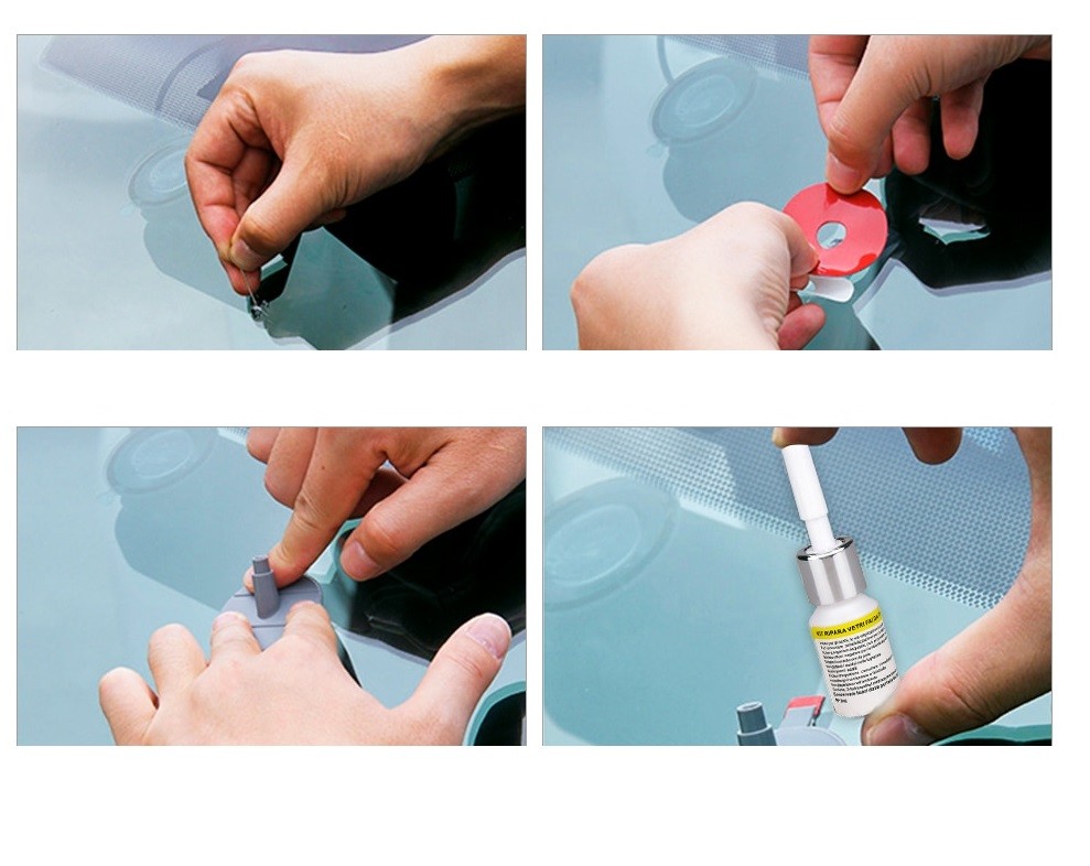 • variante 1: 1x injetor para reparação de vidro para-brisas, 1x resina de reparação, 3x selos adesivos, 1x base, 5x filme de reparação, 1x lâmina, 1x pano, 1x manual