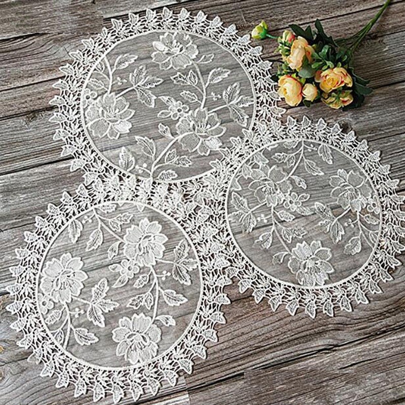 Sousplat de renda com motivo de rosas