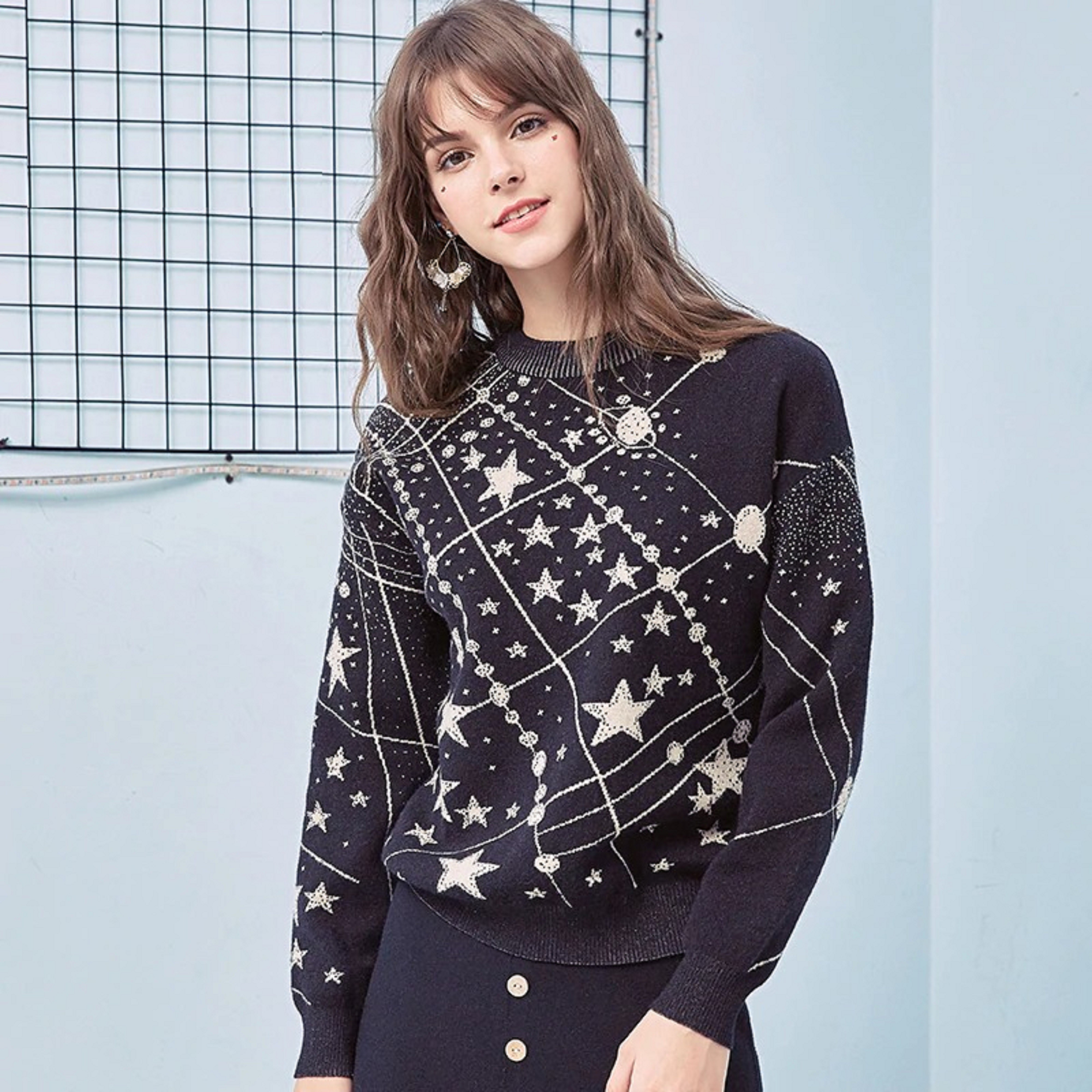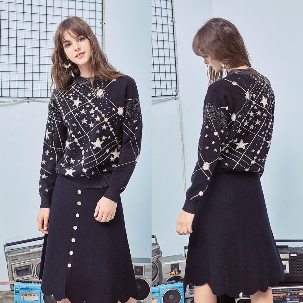Suéter feminino com estampado espacial