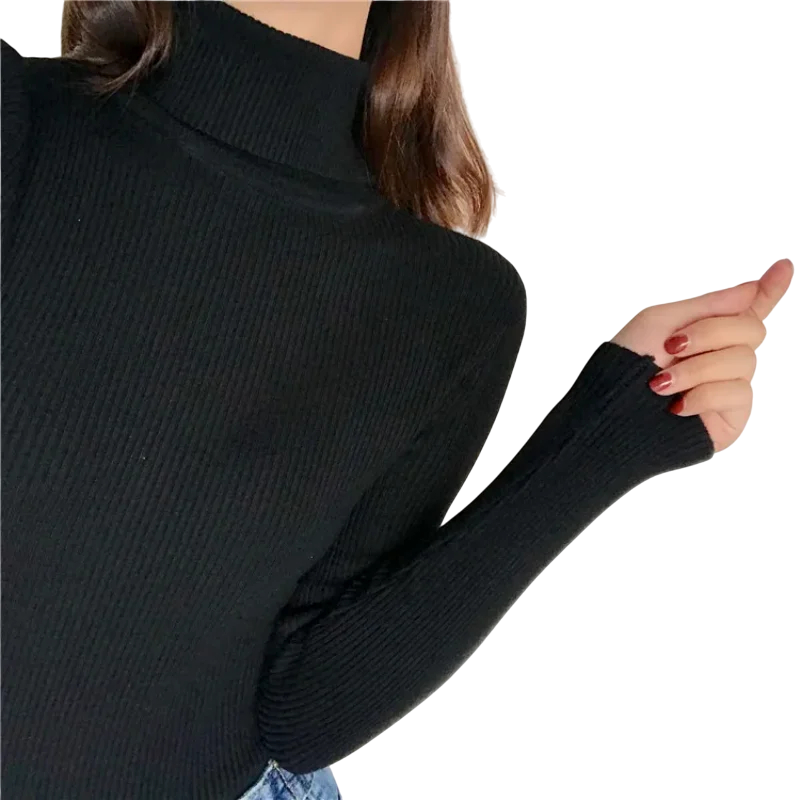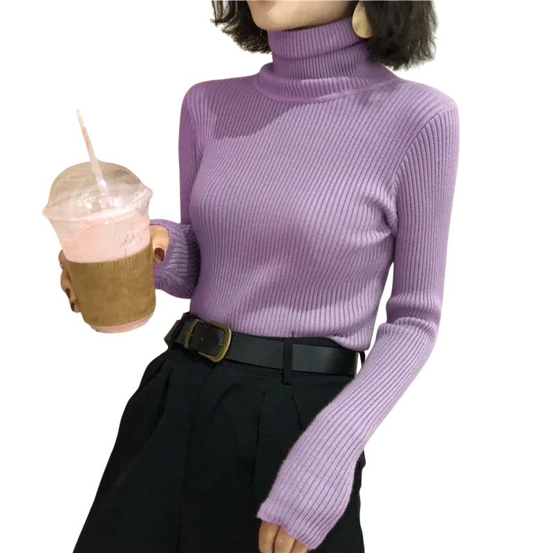 1× suéter feminino com gola alta