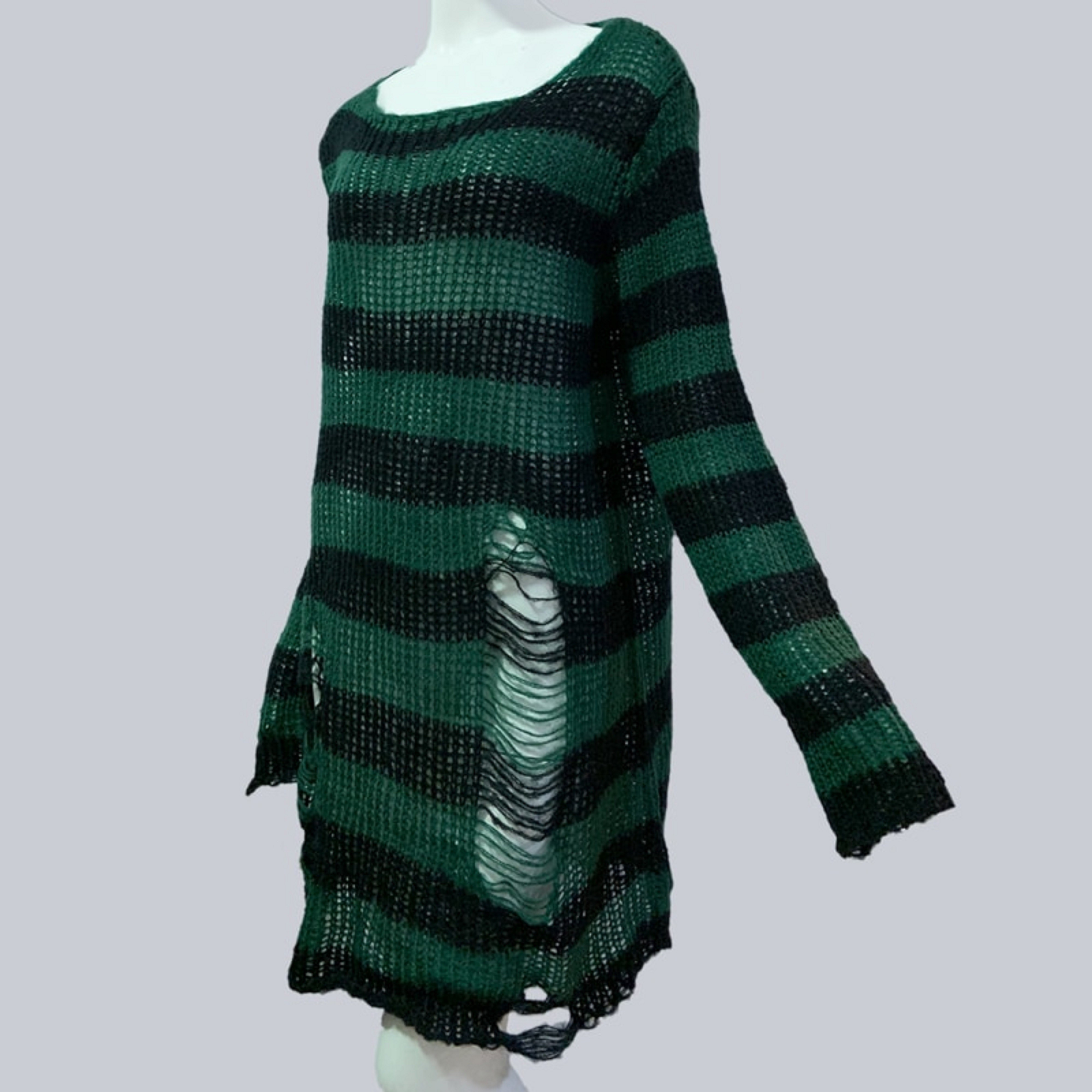 Suéter longo riscado para senhora com rasgões