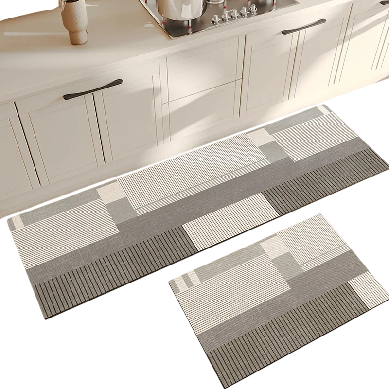 O tapete destaca-se pelo seu comprimento, que cobre uma área maior do chão na casa de banho ou cozinha e protege eficazmente contra a sujidade. Graças à camada antiderrapante, não precisa de se preocupar com escorregões, mesmo em ambientes húmidos. A superfície macia e confortável é especialmente agradável ao andar descalço no dia a dia. Alta absorção e fácil manutenção fazem dele um acessório prático para qualquer casa. A sua resistência ao desbotamento assegura que mantém a sua aparência mesmo após várias lavagens. Uma solução moderna e prática para uso diário.