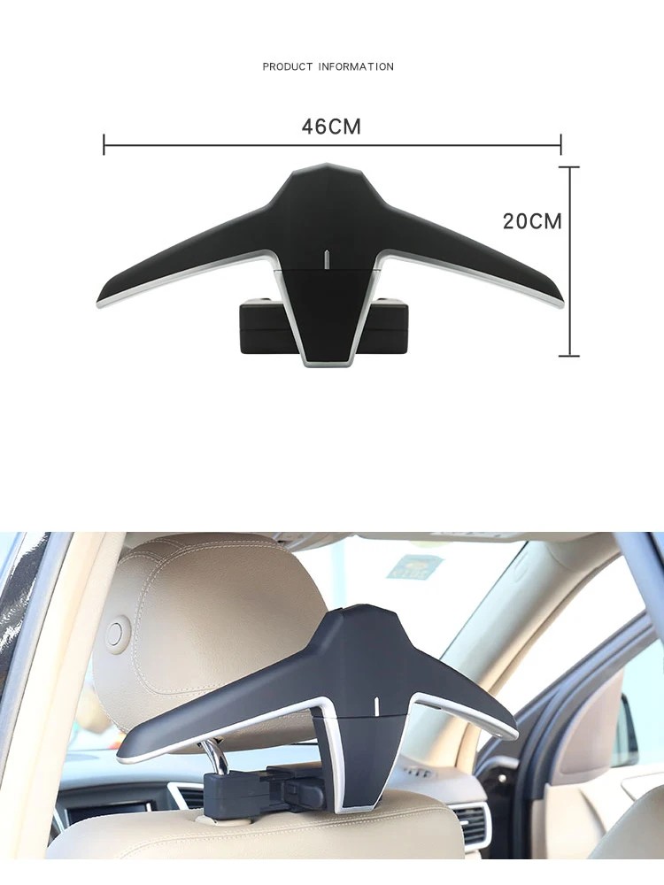Suporte cabide para carro encosto de cabeça dobrável e removível 46x20 cm para blazers casacos camisas ou sobretudos ideal para viajar. Descrição completa