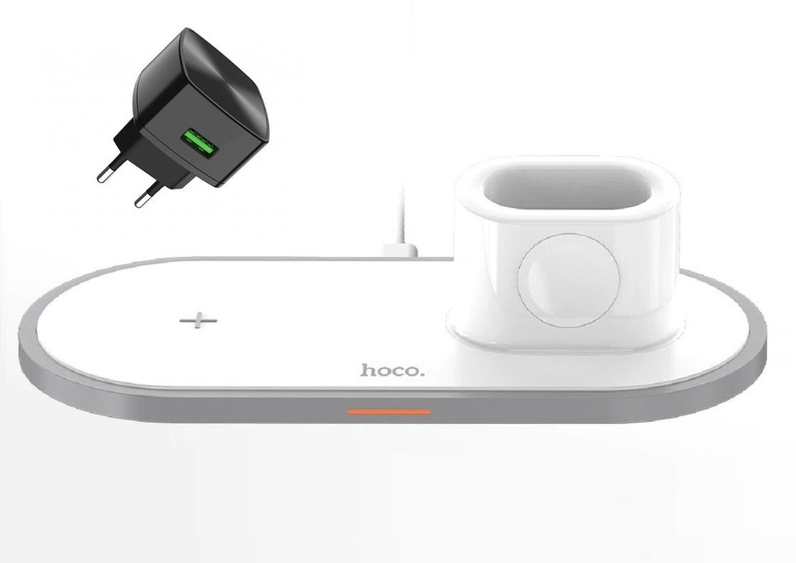 Permite carregar um telefone com suporte para carregamento sem fios, Airpods e iWatch.
