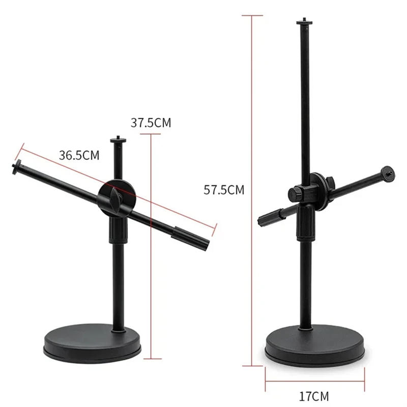Suporte de mesa com braço rotativo 360° Suporte ajustável para telefone Luz LED circular Junta rotativa Gravação Streaming Maquilhagem
