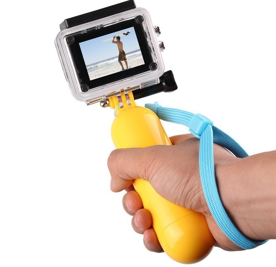 Suporte flutuante para câmaras de desporto e máquinas fotográficas com correia para o pulso, uma utilização incrível em desportos aquáticos.