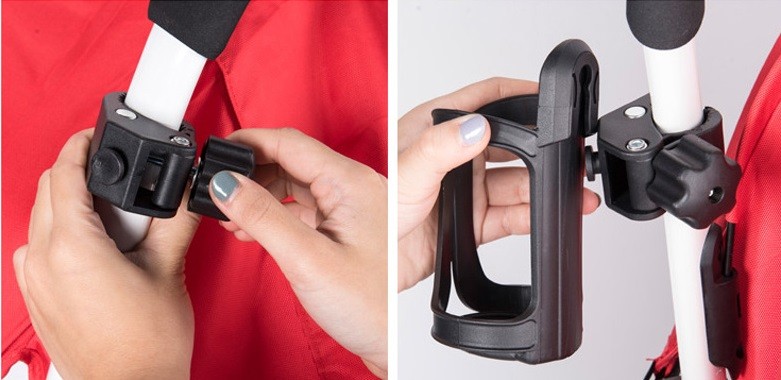 Um suporte para garrafa muito prático, que pode ser facilmente colocado no carrinho.