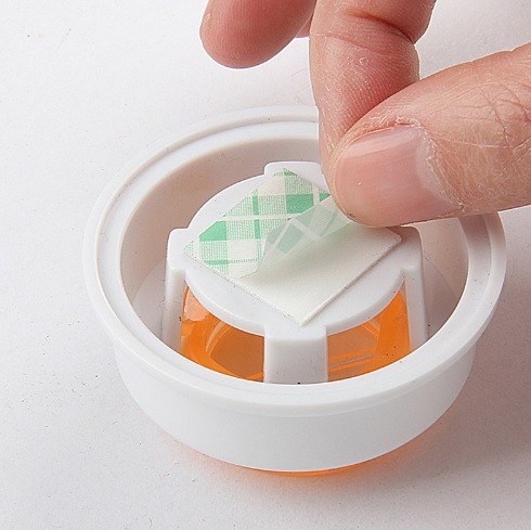 O suporte, após a remoção da fita adesiva, deve ser colocado na superfície limpa.