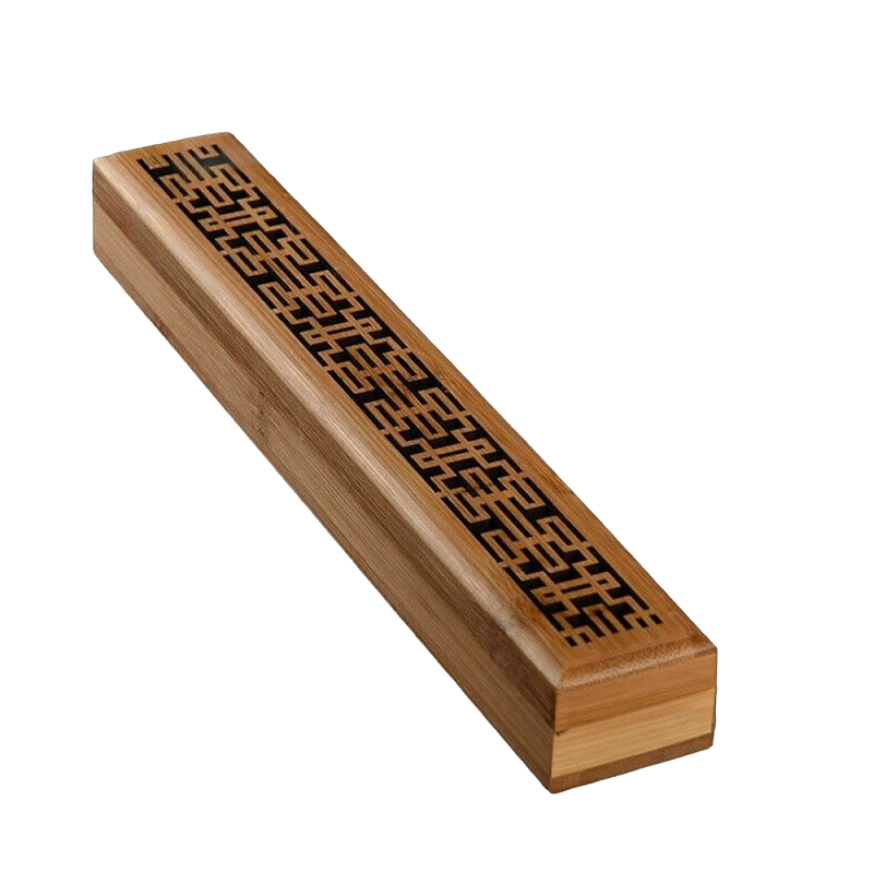 Madeira de bambu. Dimensões: aproximadamente 23,5 x 3,5 x 2,1 cm. Para uso de varetas de incenso. Descrição completa